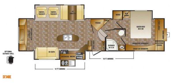 With its thoughtfully designed interior, premium features, and convenient outdoor amenities, the Sunset Trail Reserve SF34RE is the perfect blend of luxury and practicality, making it an excellent choice for campers and travelers seeking a top-tier RV experience.